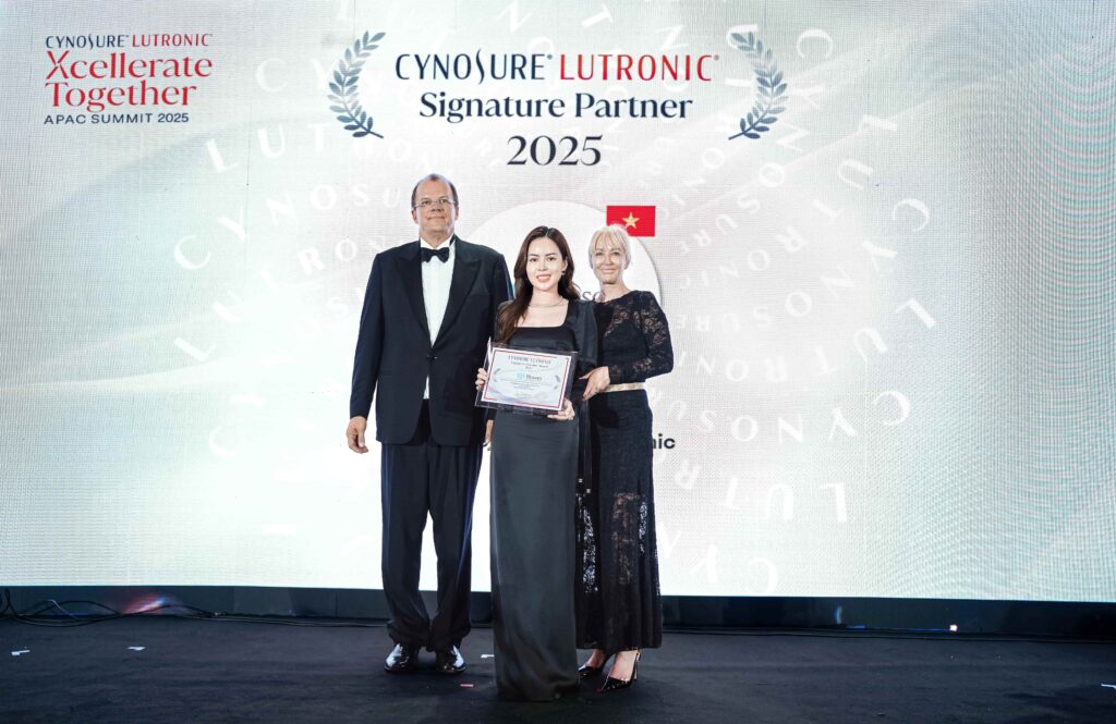 Đại diện Blossom Aesthetic Clinic CEO Mrs. Nguyễn Xuân Tâm nhận giải Cynosure Lutronic Signature Partner Award 2025